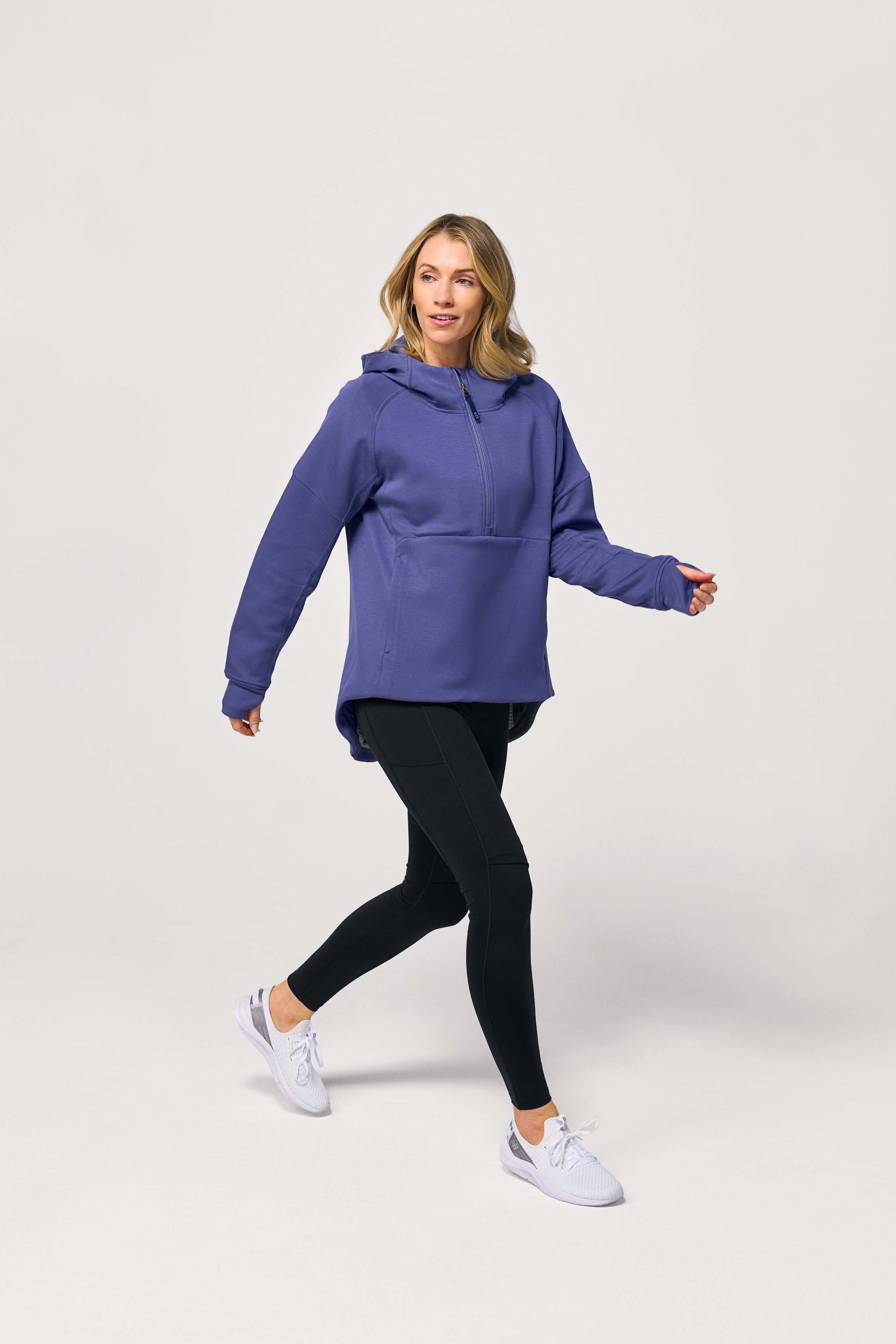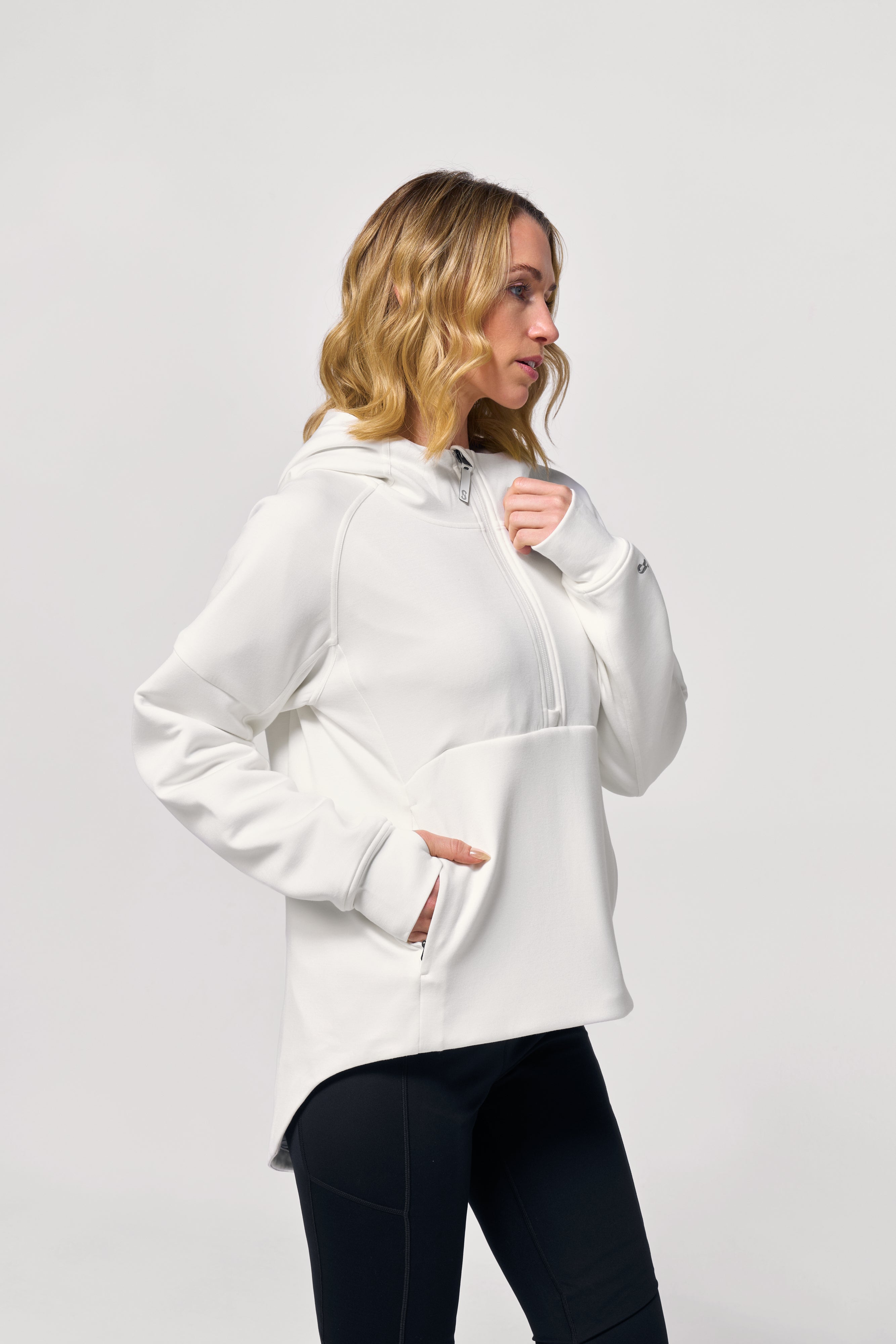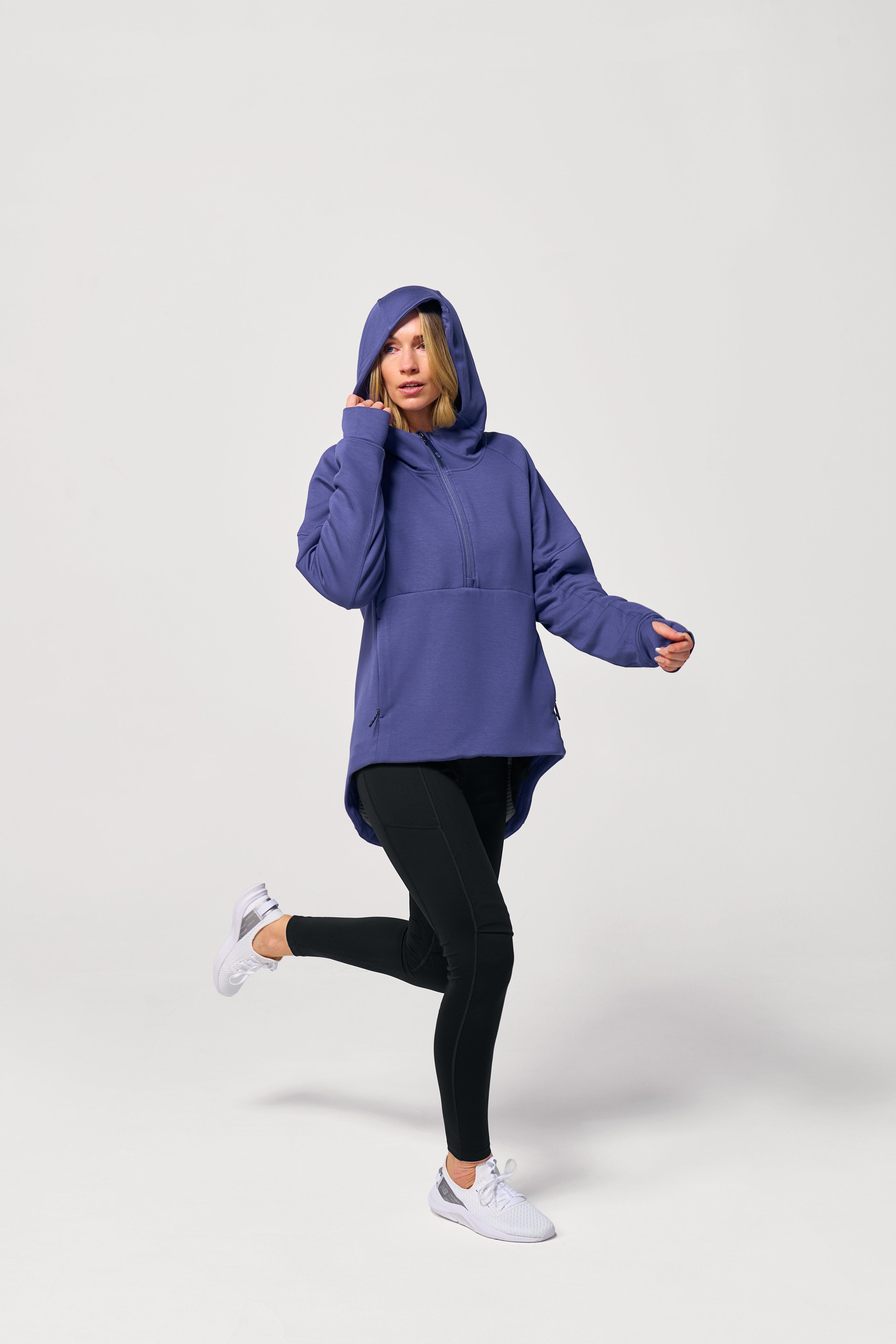 ソフトでしなやかな素材は着た瞬間から快適で、フード・サムホール・スリットポケットなど機能も充実。